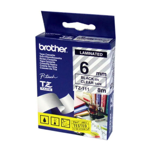 Brother Laminated TZ-Tape * Black Printing on Clear Tape * 6mm Width * 8m Length