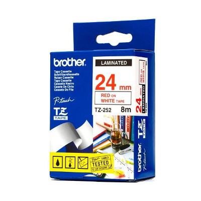 Brother Laminated TZ-Tape * Red Printing on White Tape * 24mm Width * 8m Length