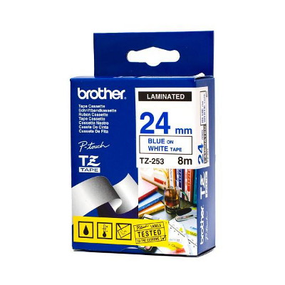 Brother Laminated TZ-Tape * Blue Printing on White Tape * 24mm Width * 8m Length