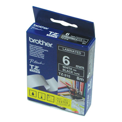 Brother Laminated TZ-Tape * White Printing on Black Tape * 6mm Width * 8m Length