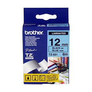 Brother Laminated TZ-Tape * Black Printing on Blue Tape * 12mm Width * 8m Length