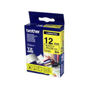 Brother Laminated TZ-Tape * Black Printing on Yellow Tape * 12mm Width * 8m Length