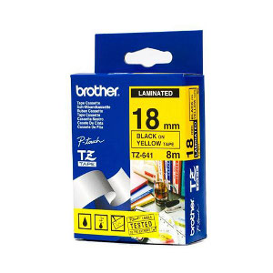 Brother Laminated TZ-Tape * Black Printing on Yellow Tape * 18mm Width * 8m Length