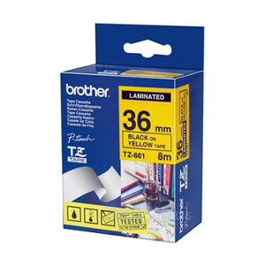 Brother TZ-661 Laminated Black Printing on Yellow Tape (36mm Width 8 Metres in Length)
