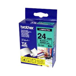 Brother Laminated TZ-Tape * Black Printing on Green Tape * 24mm Width * 8m Length