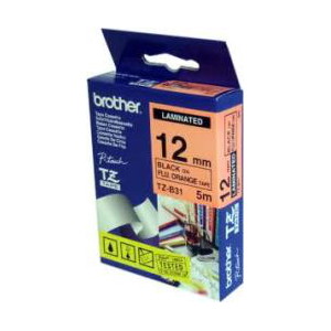 Brother Laminated TZ-Tape * Black Printing on Fluro Orange * 12mm Width * 5m Length