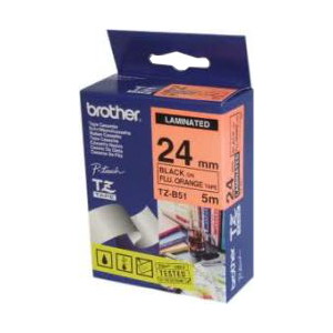 Brother Laminated Black TZ-Tape * Printing on Fluro Orange * 24mm Width * 5m Length