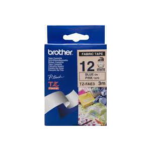 Brother Fabric Iron on TZ-Tape * Blue Printing on Pink Tape * 12mm Width * 3m Length