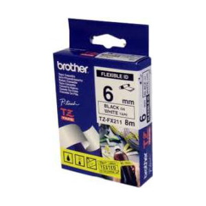 Brother TZ-FX211 Flexible Laminated Black Printing on White Tape (6mm Width 8 Metres in Length)