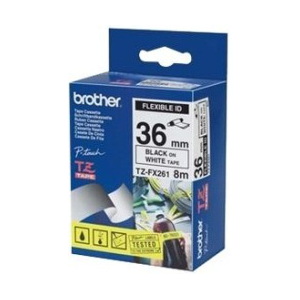 Brother Flexible Laminated TZ-Tape * Black Printing on White Tape * 36mm Width * 8m Length