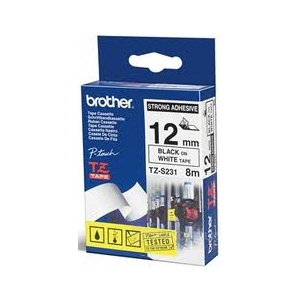 Brother Strong Adhesive Laminated TZ-Tape * Black Printing on White * 12mm Width * 8m Length
