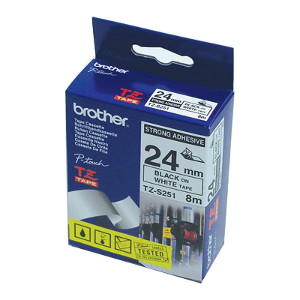 Brother Strong Adhesive Laminated TZ-Tape * Black Printing on White Tape * 24mm Width * 8m Length