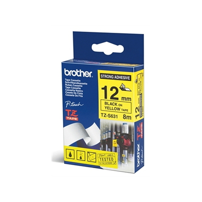 Brother TZ-S631 Strong Adhesive Laminated Tape Black on Yellow (12mm 8M Length)