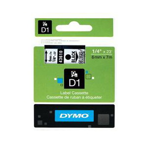 / DYMO D1 (SD43610/S0720770) Label Cassette, 6mm x 7m – Black on Clear