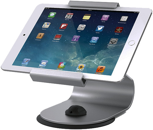 NEXA TS650 Adjustable Tablet Stand. The beautiful TS650 tablet stand gives a stylish and long lasting mounting solution for iPads and other compatible tablets. Notable features include: – Aluminium alloy construction. – Fits tablets from 6.1 to 7.5mm thick and 169 to 220mm in width including iPad ranges Mini Mini2 Mini3 Mini4 Air Air2 and Pro 9.7" 12.9" & 10.5". Note that iPad Mini must be used in portrait and all others in landscape orientation. – Can be screwed to the counter or attached with adhesive pad with optional rotation feature. To find out more about this product please also check the Nexa website – http://nexapos.com/wp/product-category/ipad-tablet-stands/