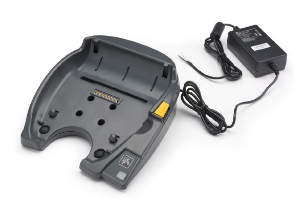 Dock and charge a single QLn420 printer in a vehicle or on a forklift. Includes 15-60V DC power supply. Can be optionally used with a RAM Arm mount.
