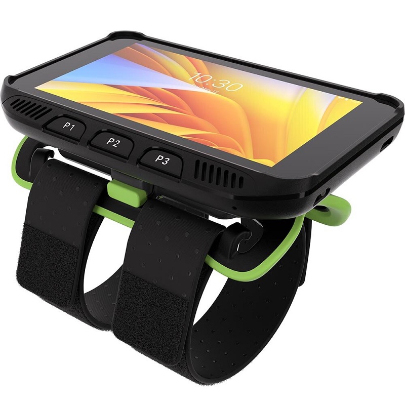 Give your store associates the hands-free freedom they need to pick more online orders, move inventory from dock to stock, re-stock front of store shelves and more with the WT5400 Wearable Computer. This purpose-built wearable computer offers all the right features at the right price for store associates. The large and bright 4.7 inch display is more than double the size of the prior generation, yet the increase in overall size and weight is very minimal — and the horizontal footprint is one third smaller. Now, associates can view and interact with all the information they need to complete a task on one screen — time spent scrolling and navigating through applications can now be spent completing more tasks per shift. ¬¬¬¬The WT5400 delivers the unbeatable comfort only a purpose-built wearable computer can deliver, with ergonomics that a handheld mobile computer worn on the wrist can’t offer. The compact and well-balanced design minimizes worker fatigue. At just over a half inch thick, the WT5400 sits low on the arm, virtually eliminating obstructions and making it easy for workers to reach into the tightest spaces. With three wrist strap options, you can choose single or double dial wrist straps with micro-adjustments or low-cost Velcro straps, ensuring an ideal fit on every arm — any size, right or left, male or female. A powerful modern platform provides the performance you need for today’s applications and future-proofing for years to come. It’s rugged and ready for all-day every-day use. Users can swap the full-shift battery easily, without detaching the device from the wrist mount on their arm. And only-from-Zebra Mobility DNA tools simplify every aspect of device lifecycle for IT and your users. Give your associates the power of next generation hands-free wearable computing and watch productivity rise in your stores with the WT5400.